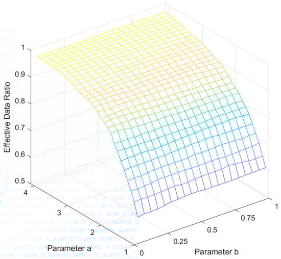 Figure 3 shows the changes in confidence when parameters a and b vary within the range [1, 4] and [0, 1], respectively. As seen from Figure 3, when and , the confidence will increase, but the increase is slight and will lead to more severe distortion of the fitting curve, so a = 2.3, b = 0.51, and confidence .