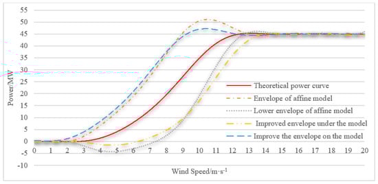 The central value f(v0) of affine wind power in Equation (4) is the theoretical wind power when the input wind speed is v0.