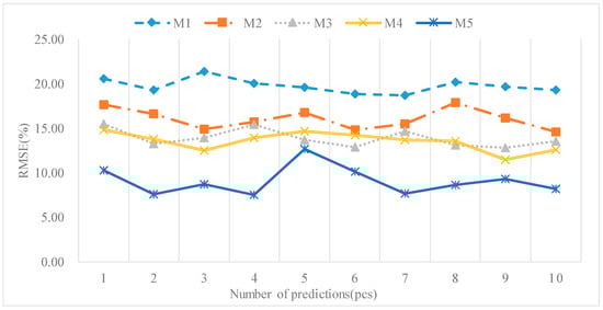 - It can be seen from the observation curves M3 and M4 that the improved model has good stability, and the RMSE value of the predicted result is stable at about 15%, which can improve the model prediction result stably and effectively.