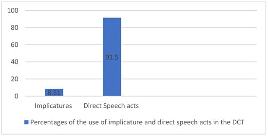 Comparing gender pragmatic competence has also been researched for decades even though the evidence for this is diverse. Research studies have brought to light that female and male participants have differences in the sense of language taboo, phonetic, vocabulary and communication patterns and rely on each individual’s practical and linguistic competencies []. As discussed, scholars have brought to light differences between genders [,,]. An investigation on EFL learners’ refusals as a face-threatening act between female and male learners was conducted []. It was observed that female participants preferred gentle politeness as a way of refusing and they also gave reasons when refusing, whereas, in general, male performances indicated that they were more open to expressing feelings and they were more direct in refusals. In our research, similar results were demonstrated in the DCT as female learners hardly ever used the word ”no”, but the male learners used it more than it was expected. Barzani and Mohammad [] conducted research that tested Iraqi Kurdish participants’ pragmatic competence using an MCDT and DCT. The participants in their study illustrated low levels of pragmatic competence but female learners displayed higher performances in the comprehension of speech acts and situational routines than the male participants. In our research, one of the goals was to investigate and compare male and female participants’ pragmalinguistic and sociopragmatic performances in the production of speech acts and comprehension of implicatures. The female respondents used features of sociopragmatic competency more but misused semantic features such as lexical and syntactic items according to each context. Although the female participants achieved better results in the comprehension of implicatures (MCDT), they received slightly lower marks in the production of speech acts (DCT). Due to this, the researchers gave two reasons for the lower performances in the DCT on part of the female respondents. The first was due to their insufficient use of pragmalinguistic features even though they were able to utter the correct use of grammatical features, which they lacked in the other categories in the discourse completion criterion. A study conducted on Japanese learners of English as an L2 discovered that male students were more dominant in interactions compared with female students [,]. The male participants had more affirmative responses relative to the context and used appropriate structures that matched each item of speech acts in the DCT. The second is believed to be that the female participants had a higher degree of the politeness principle even though they received slightly lower results. Furthermore, the reason why the female participants were not able to provide the correct pragmalinguistic features, even though they used the correct speech acts of directness, was because they had difficulty performing implicatures of indirect refusal, verb irony, indirect request and indirect advice due to their culture. The norm of culture influences the pragmatic competence of students among gender. The DCT results displayed that the male participants comprehended the situational items better and were able to identify idiosyncratic and formulaic features of the implicature tasks compared to the female students. Therefore, male students are able to communicate in English appropriately in a social context. As mentioned, Alzeebaree and Yavuz [] assessed 83 Kurdish undergraduate students’ pragmatic performances by using a DCT and then compared the results with those of 14 native speakers of English. The results indicated that the participants’ responses were, in fact, pragmatically appropriate and structurally accurate. With this assumption, if we were to compare the results of our investigation, it demonstrates that the performances of the participants had a low level of pragmatic competence in terms of the results of the DCT. The EFL participants were asked to complete the 10 situational items without providing them with explanations of implied meanings. The performances from the DCT illustrated that the majority of the respondents used direct speech acts rather than implicatures.