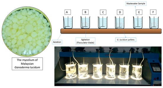 21. Hanafiah, Z.M.; Mohtar, W.H.M.W.; Hasan, H.A.; Jensen, H.S.; Klaus, A.; Wan-Mohtar, W.A.A.Q.I. Performance of wild- Serbian Ganoderma lucidum mycelium in treating synthetic sewage loading using batch bioreactor. Sci. Rep. 2019, 9, 16109. [Google Scholar] [CrossRef]