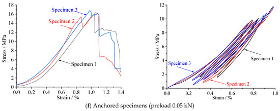 Drilling, unloading and bolt support are widely used in the practice of coal mine roadway engineering as the means of rock burst prevention and support [28,29,30,31,32]. However, the evaluation index of complete coal body is still used in bursting liability evaluation, and the results obtained do not match with the actual dynamic phenomenon on site, which causes inaccurate evaluation results, and even brings serious accidents. Therefore, it is necessary to study the bursting liability of pore-bearing and anchored coal bodies to be more in line with reality. In view of the above understanding, this paper conducts uniaxial compression tests and uniaxial loading and unloading tests on three types of specimens with different states: intact specimens, specimens with holes and anchored specimens. Based on this, a new method of bursting liability analysis based on the impact kinetic energy of the crushed block is proposed, and the evaluation method commonly used in production practice is modified. The correctness of the new method is verified by numerical simulation method, which provides a new method for the evaluation of bursting liability of the specimen.