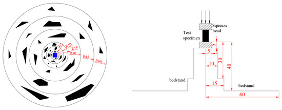 - After the uniaxial compression test of the specimen is completed, the broken blocks are collected according to the throwing distance classification. Assuming that the broken blocks are all thrown from the type of center part of the specimen, the distance ranges are 0~5 cm, 5~10 cm, 10~15 cm, 15~30 cm, 30~45 cm, 45~60 cm, respectively, and the total mass of broken blocks in the regional range is counted.