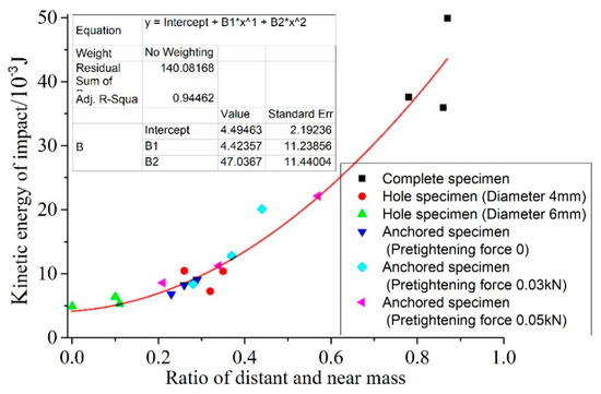 Fitting the remote mass ratio to the total kinetic energy of the impact in Table 5, a scatter plot of the impact kinetic energy-remote mass ratio is obtained, see Figure 5.