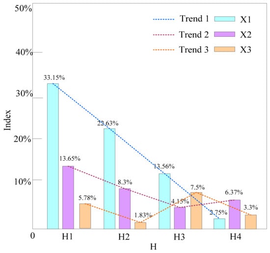 Figure 6 shows a summary of the calculation results of the eigenvectors and eigenvalues of each judgment matrix based on the consistency index in Table 4.