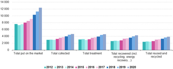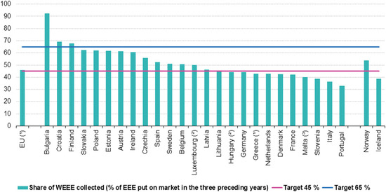 - EuroStat Statistics Explained. Available online: https://ec.europa.eu/eurostat/statistics-explained/index.php?title=Waste_statistics_-_electrical_and_electronic_equipment (accessed on 12 January 2023).