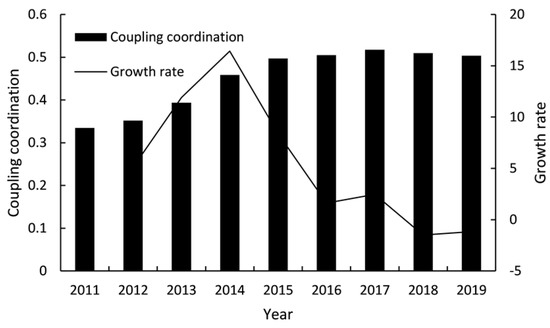 The trend of coupling coordination.
