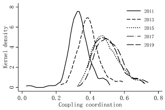 The kernel density of coupling coordination.