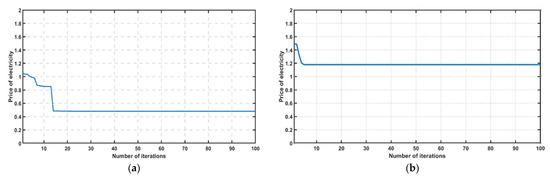 LCOE values for 100 iterations: (a) first scenario (b) second scenario.
