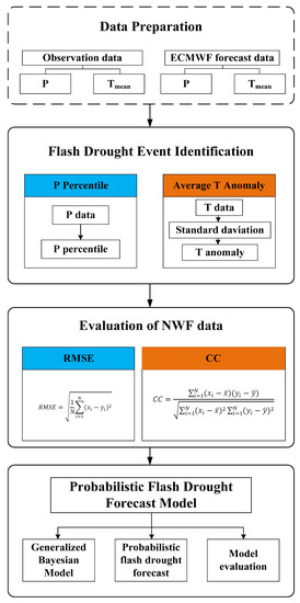 The flowchart of probabilistic flash drought forecasting and performance evaluation.
