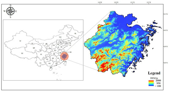 The location and DEM of Zhejiang Province.