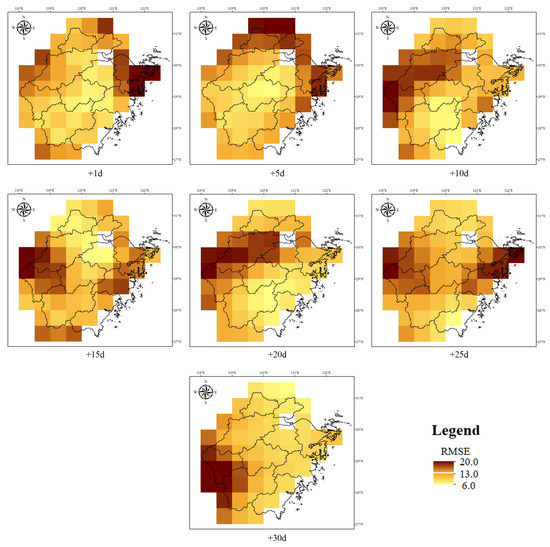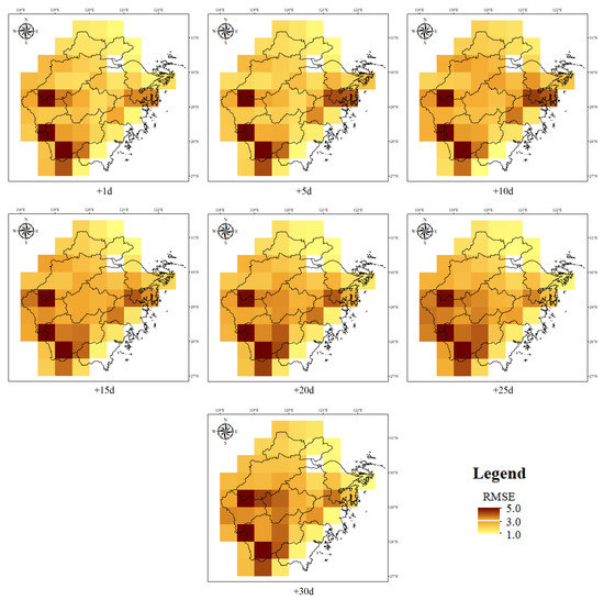 The spatial distribution of the RMSE for the precipitation forecast in the study area.