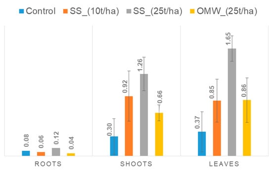 | Cr (mg/kg) | 60.2 (4.7) | 68.4 (1.7) | 2.9 (0.2) | 3.9 (0.04) |