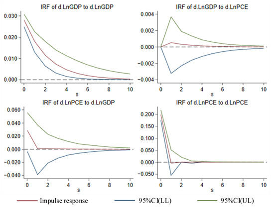 It should be noted that the application of VAR-type models in economic forecasting and policy evaluation is conditional. VAR-type models can only successfully forecast systems that operate according to the laws of the market without government intervention. Conversely, for systems with government intervention, it is difficult to make successful forecasts. Structurally, the PVAR model is a dynamic model that does not focus on the interpretation of the coefficients of the parameters to be estimated, and it is also difficult to confirm the significance of individual variables. Considering the above limitations of the PVAR model and the fact that both planned and market prices are implemented in the Chinese energy market during the sample period, this paper does not conduct in-depth economic analysis and policy evaluation of the PVAR model parameter estimation results, but focuses on the dynamic effects of the exogenous perturbations of each variable on itself and other variables using impulse response function and variance decomposition based on the PVAR model.