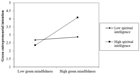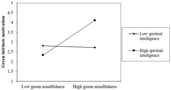 Individuals with higher levels of SI can foresee a more significant purpose in their existence [16]. They are well aware that they are accountable for their actions and responsible towards their surroundings. Particularly in green entrepreneurship, individuals with high SI are more likely to develop a more profound sense of accountability to protect their environment. This is because when they realize that their actions should be “ecologically answerable” and “society-specific”, they extend their participation in environment-related activities [15]. SI helps individuals view their work in a larger and more mindful context, eliciting intrinsic valence of their efforts. This is based on the SDT [22,23], which posits that by provoking positive feelings nurtured on a prime cause, e.g., an environmental obligation, SI elevates satisfaction and pleasure inherent to the activity. However, for individuals with lower SI the likelihood of cultivating G-MFN into GIM is less because their actions are not formed on spiritual values. Hence, their internal drive, i.e., GIM, to execute eco-friendly activities is reduced.