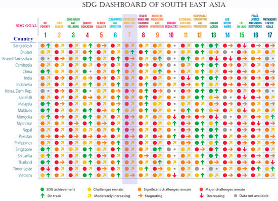 Figure 5 shows that although Goal-7 has significant challenges in terms of affordable and clean energy, development is increasing at a moderate rate. Only Bhutan in this trend performs on track to attain the goal, although certain challenges remain, as in the case of other countries in Southeast Asia.