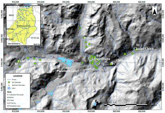 In this study, the average As concentration in 15 soil samples of S1 (Cabecera Parroquial), five from S2 (Baños), four from S3 (Chalpi), six from S4 (El Tambo), and six from Papallacta Lake in the Papallacta parish were 43 mg kg−1, 20.7 mg kg−1, 20.4 mg kg−1, 41.2 mg kg−1, 66.7 mg kg−1, respectively.