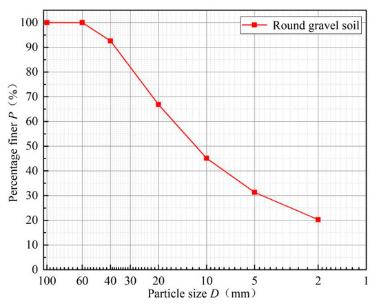 Particle size distribution curve of round gravel soil after scale reduction treatment.
