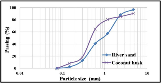 Particle size distribution of river sand and coconut husk.