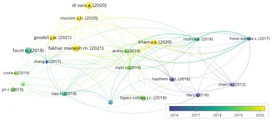 Figure 9 demonstrates that most bibliometric reviews on these topics first appeared in 2018. Satish Kumar, Weng Marc Lim, Zeshui Xu, and Manuel J. Cobo have significantly contributed to Business and Management. Zeshui Xu reviewed deep learning, support vector machines, applied intelligence, rough sets, and intelligent decision-making, whereas the three authors focused primarily on business and management topics. Ajith Abraham also has had a significant impact over the past four years. His bibliometric articles covered trending topics such as Industry 4.0, engineering applications of AI, fuzzy-technique applications in Big Data, etc.