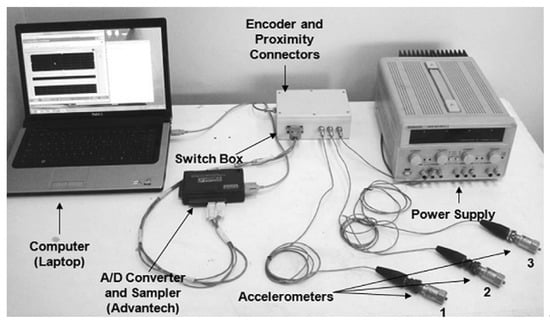The acceleration sensor type CTC AC102 was employed to record acceleration signals, and its specifications are presented in Table 2. The output data of the acceleration sensor were converted to digital data using an electronic analog-to-digital converter, and then the digital signals were recorded on a hard drive. The acceleration sensors and vibration measurement setup are illustrated in Figure 2.