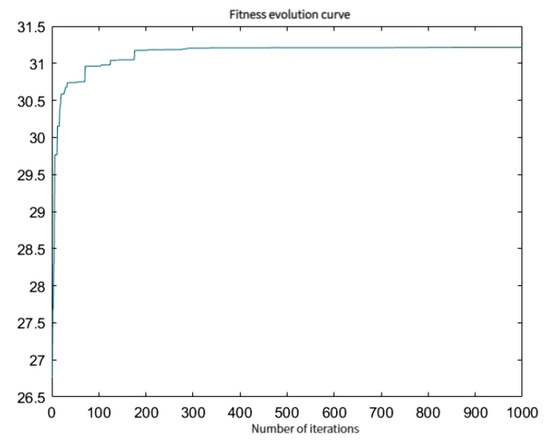 CMS model decomposition results can reveal the evolution trend of biomass energy product competitiveness and market factors. However, in order to better understand the relative advantages of specific products, we must use a new RCA method known as the IRCA method. The method was designed and built specifically for this purpose. The IRCA method was used in this study to assess the export trade competitiveness of biomass energy products in RCEP countries. This study optimizes the projection tracing method using a real-number-coded accelerated genetic algorithm (RAGA), setting the initial population size to 100, the maximum number of genetic generations to 1000, the crossover probability to 0.8, and the variation probability to 0.05, and the optimization process was carried out using MATLAB. The final one-dimensional projection index was 31.2 according to the genetic algorithm, and the weights of each variable were a = {0.5083, 0.6792, 0.0860, 0.0695, 0.5178}. The convergence process is shown in Figure 3. Due to the small quantity of data on relevant indicators for the 10 ASEAN countries, only six countries—China, Korea, Australia, Japan, Thailand, and Malaysia—were analyzed in this IRCA index method.