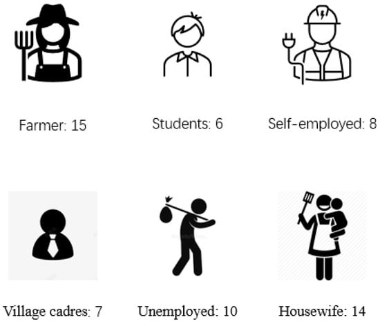 Both regions are located in the Shaanxi province of China so that other potential influences on the sample data can be reduced or eliminated. Every single study sample consisted of thirty different interviews. In terms of the procedure for selecting samples, this research makes an effort to take into account the effects brought about by disparities in gender, ag, and educational level. Figure 4 presents the interviews’ fundamental information.