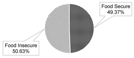 Most of the household respondents were aged between 31 and 50 years, and no respondents were aged 13 to 19 years. Respondents aged 20 to 30 years and those aged 31 to 50 years tended to be food insecure. Meanwhile, respondents aged 51 years and over tended to be food secure. The age of the head of the household was related to the food security of the household. When the household head was older than 60 years, the household was more likely to be food secure than if the household head was younger [40]. However, the previous results by Olaniyi [41] show that households with an older-aged household head tend to be food insecure, compared to those with a younger household head.