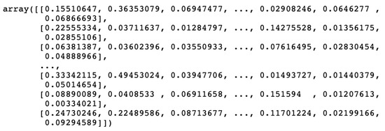 The term frequency–inverse document frequency (TF-IDF) technique mentioned before was next applied to calculate the weight of each term to denote its relative importance in a document. This is a data retrieval approach that allocates a weight to a term’s frequency (TF) and its inverse document frequency (IDF). Each term is given these two scores. The weight of the term is then computed as a product of these scores. TF-IDF is a statistical modeling tool used to assess the worth of a word to a document that belongs in a corpus. The value of a word increases vis-à-vis the frequency of its appearance in a document [29,44]. Simultaneously, it decreases in reverse symmetry to the frequency of its presence in the corpus. The primary thrust of TF-IDF is that when a word or phrase appears in a document with a greater frequency of TF, and seldom shows up in other documents, the word or phrase has reasonable classification prowess and is competent for classification problems. In this study, the companies’ disclosures were divided into 31 industry groups to calculate the TF-IDF value for the 55 extracted keywords. The resulting matrix is a data frame with a size of 31 × 55. Figure 4 displays partial examples of the final matrix.