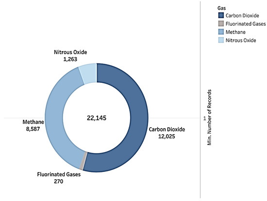 The top 30 federal and state statutes by frequency cited in the disclosures are displayed. The implication is the higher the frequency of mention, the more relevant the statute to sustainability-related activities. The extraction of the statutes is a novel contribution of this study. Further, we were also interested in the types of greenhouse gases mentioned most frequently in the companies’ disclosure reports during the past 10 years. The following donut chart was developed by counting the number of occurrences of various types of greenhouse gases mentioned in the companies’ disclosures and the proportional relationship between them and the total number of counts. This is shown in Figure 8.
