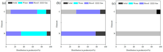 The carbon and nitrogen element balance analysis was carried out based on the elemental composition of sludge and products. C, H, N, S, and O in SS, bio-oil, and biochar samples were analyzed using an elemental analyzer. Fuel gas composition was determined using gas chromatography. Water phase samples were analyzed for total organic carbon and total nitrogen content based on standard methods [7,18,28].