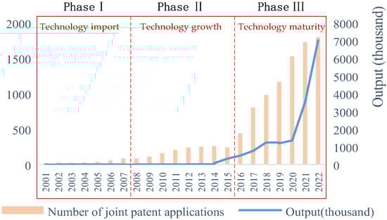 Phase I: Technology import. Output and the number of joint patent applications grew slowly,