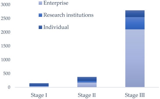 As early as 1991, the technical development of NEVs and key components were launched by the Chinese government. However, due to technical barriers and backward consumer concepts, the industry has been in the embryonic stage of technology and less patent data is available. The NEV industry has been growing rapidly since 2001, as the concept of energy transformation and environmental protection has deepened. As a result, this study has collected 357,000 patent applications for the Chinese NEV industry from 2001 to 2022, including Publication Number, Title, Application Date, IPC, Current Assignee, Inventor, Patent Value and other vital fields. Technology research is an activity with a low success rate. Using only licensed patents to build the network, while ignoring partnerships in failed innovations, the innovative partnerships of each subject cannot be fully characterized. Therefore, patent applications, rather than licensed patents, were used in the construction and analysis of the network. Patent data were included in the State Intellectual Property Office of China [25].