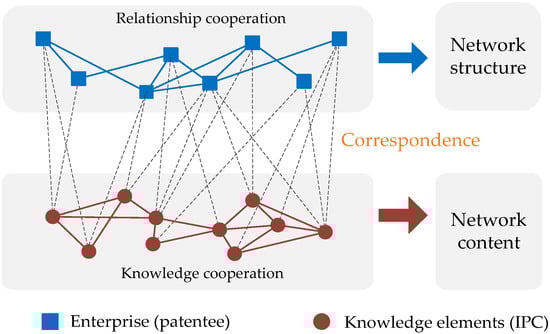 The essence of cooperation between enterprises is a process of knowledge transfer and resource integration through joint patent application and patent transfer [44]. The innovative network can reflect the sharing and flow of network content (technology, knowledge, and other resources) among organizations [45]. Therefore, the article further pays more attention to the function of network content (see Figure 8).