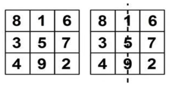 Now, take a copy of the first square again and do a reflection of the cross diagonal; this will exchange all the numbers, which will generate a cross diagonal with each other shown in Figure 8.