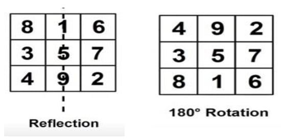 To sum up, the Magic Matrix explains that it is the game of shuffling the numbers of the square by reflections, rotations, or a combination of both. Because its main property is how to combine or exchange the numbers in a manner that returns a matrix with no repeated numbers, and the summations of rows, columns, and diagonals remain the same. Either we can try to set the square of the matrix by taking the even number concept, odd numbers, center, and starting number of the matrix, but the main point is to obtain a matrix with an equal sum of all manipulations.