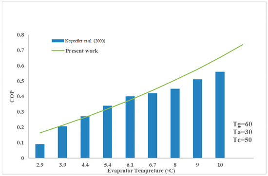 Validation of the ARS cycle coefficient of performance (COP) graph regarding the evaporator temperature with reference [17].
