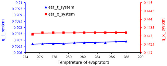 3.3. The Effect of Evaporator 1 Temperature on the Energy Efficiency and Exergy of the System