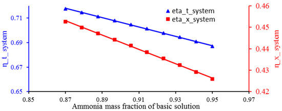 Effect of ammonia concentration on energy and exergy efficiency of the system.