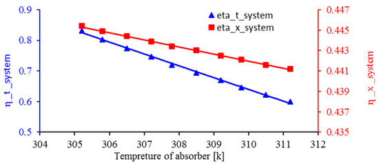 Effect of absorber temperature change on energy and exergy efficiency of the system.