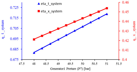 Effect of generator pressure change on energy and exergy efficiency of the system.