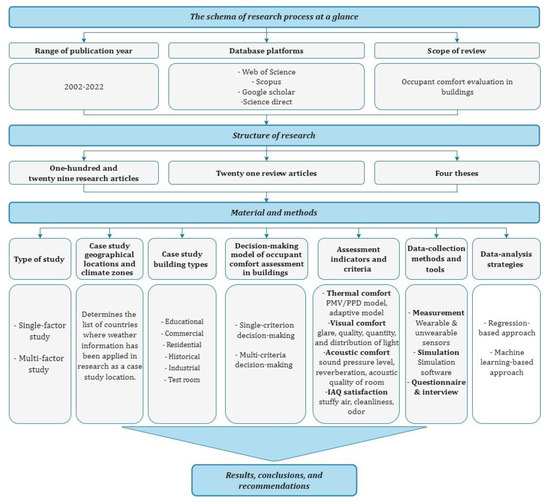 Additionally, in the conclusions and recommendations section, we suggest some potential areas that subsequent comfort-related research may investigate extending into and exploring. Figure 6 shows a flowchart of a research concept. Moreover, Table A1 in the appendix contains all 154 analyzed studies with their author(s) and year of publication.