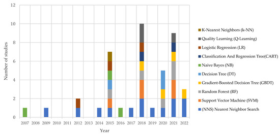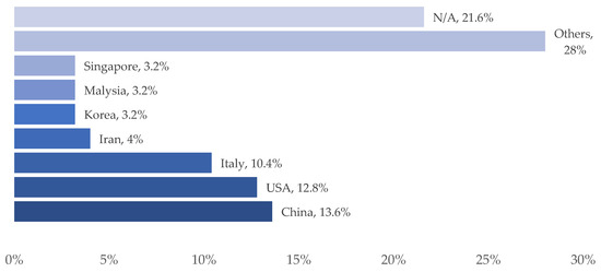 Figure 9 illustrates that the majority of case studies were conducted in China, followed by the USA, Italy, Iran, Korea, Malaysia, and Singapore. The others classification refers to countries with just one or two case studies among their analyzed studies in locations that include Turkey, Egypt, Australia, Vietnam, Finland, France, Sweden, Ireland, Switzerland, Chile, Canada, Nepal, Romania, Taiwan, India, Spain, Denmark, Morocco, Germany, Russia, and the UAE. The N/A category indicates that geographical locations of case studies are not available or not mentioned.