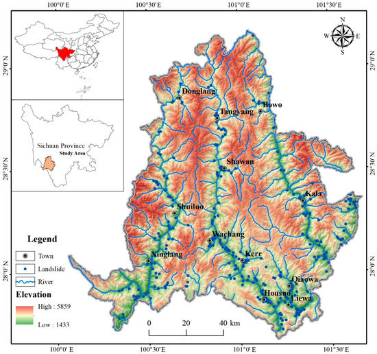 Landslides are one of the geological hazards with the highest occurrence rate in the southwest of Sichuan, with such features as high hazardousness, high destructive power, and wide distribution, and thus seriously threaten the safety of human life and property [1]. Muli, Sichuan, has mountainous terrain, rich stratigraphy, complex structure, and a low degree of overall exploitation. However, along the river on both sides of the low elevation, it features relatively flat terrain, encouraging road construction and human settlement development with riverfront characteristics. Under the actions of nature and external forces, the two sides of the riverbank easily form unstable slopes, which provide conditions for the gestation of landslides. By the end of 2021, Muli County had had 313 landslides. There were 19 large landslides, 134 medium ones, and 160 small ones. These landslides are uncertain in their occurrence, highly destructive, and threaten a large number of people and properties. Therefore, it is of great significance to explore their spatial distribution characteristics, disaster mechanism, and vulnerability index to assist regional disaster early warning work.