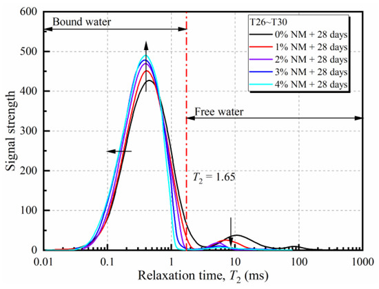 Effect of NM content on T2 spectra of NM-treated loess.