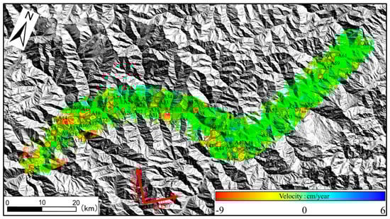 Deformation results of Sentinel−1 ascending data in the study area.