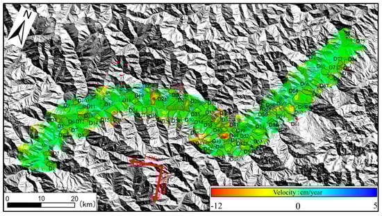Deformation results of Sentinel−1 descending data in the study area.