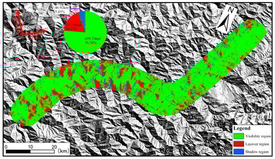 Geometrical distortions (layover and shadow) and visibility of the ascending Sentinel−1 images in the study area.