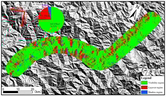 Geometrical distortions (layover and shadow) and visibility of the descending Sentinel−1 images in the study area.