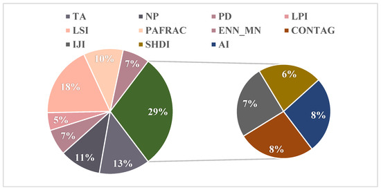 The change in the landscape index of rural settlement patterns is shown in Figure 8. From the perspective of time change, the growth trend of rural life security function in Yongtai County is obvious, and the spatial differentiation characteristics have obvious changes. The average and median life security function in 2013 were less than that in 2015, and the number of villages and towns in grade I and II functional areas in 2015 was significantly more than that in 2013, indicating the overall improvement of life security function in Yongtai County in 2015. From the perspective of spatial distribution pattern change, although the number of each functional grade area has changed at the two evaluation time points, the relative strength relationship between the township functional index has not changed significantly. The analysis of per capita income is helpful to understand the degree of wealth and poverty in a region. From the source of income, a higher degree of industrial agglomeration and a more developed industrial and agricultural system will bring higher income, which can reflect the level of urbanization in a region; the level of urbanization is closely related to the distribution characteristics of rural settlements. Logically, per capita income has a positive impact on the density of rural settlements. Nearly 75% of the rural settlements are distributed in gentle areas with slopes of less than 2°, and less than 2% of the rural settlements are distributed in areas with slopes greater than 10°. The impact of the slope on the spatial distribution of rural settlements is more obvious than that of altitude. Low-slope areas are conducive to the construction of residential areas and infrastructure, and agricultural production can be better carried out, so it is easier to form settlements.